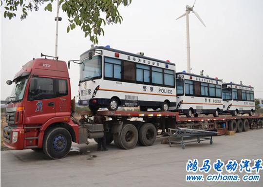 2012年3月20日下午,河南鴻馬電動(dòng)汽車公司內(nèi)舉行甘肅省嘉峪關(guān)市流動(dòng)警務(wù)室發(fā)車儀式。