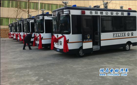 12月25日,6臺外觀漆有鴻馬標志的電動流動警務(wù)室出現(xiàn)在鴻馬電動汽車廣場,這就是發(fā)往湖南省岳陽樓公安分局流動警務(wù)室,它將成為岳陽樓一條“亮麗”的風(fēng)景線。