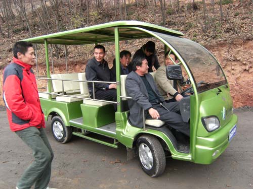 洛陽龍?zhí)洞髰{谷用的河南鴻馬電動(dòng)車公司生產(chǎn)的汽油觀光車10臺(tái)
