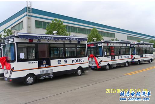 2012年6月7日下午,在河南森源鴻馬電動(dòng)汽車公司生產(chǎn)基地舉行內(nèi)蒙古海拉爾公安局移動(dòng)警務(wù)室發(fā)車儀式。