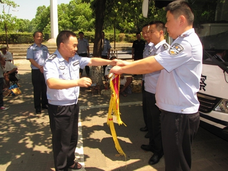 湖南益陽(yáng)市局領(lǐng)導(dǎo)為城區(qū)3個(gè)鴻馬移動(dòng)警務(wù)平臺(tái)授予“流動(dòng)紅旗”