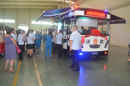 許昌市中級人民法院院長韓玉芬表示,此次河南森源鴻馬電動汽車有限公司交付的移動法庭可以方便路途遙遠的群眾參加訴訟,法院能夠更方便的普及法律知識,同時能夠?qū)㈤_庭地點搬到偏遠轄區(qū),在該移動法庭上可以實現(xiàn)當場立案、開庭審理、調(diào)解、判決。