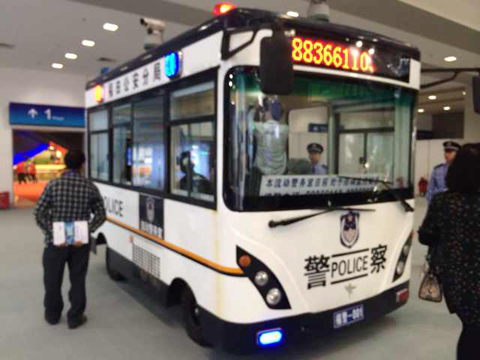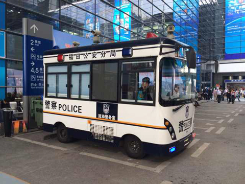 移動警務(wù)室在展館外巡回執(zhí)勤