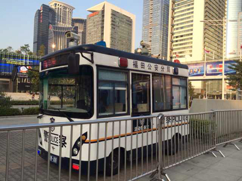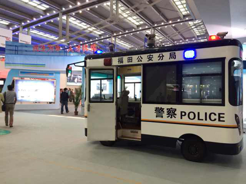 鴻馬移動警務(wù)室在高交會展館前執(zhí)勤