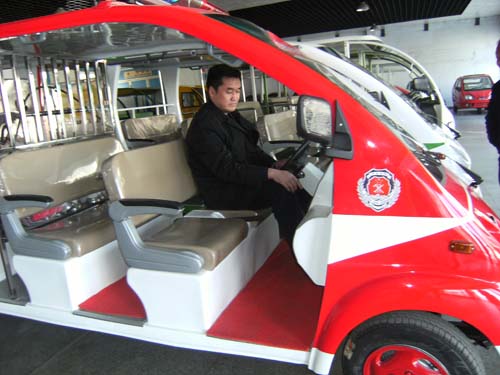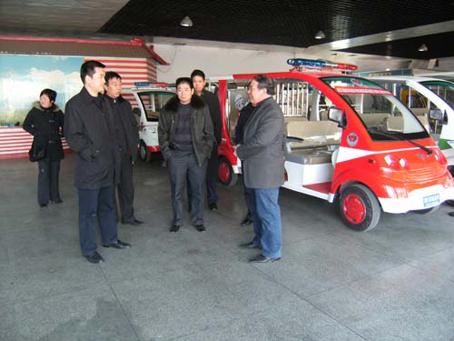 在各個車間分別參觀了電動觀光車、電動客車,電動警車。電動貨車。電動消防車等車型。