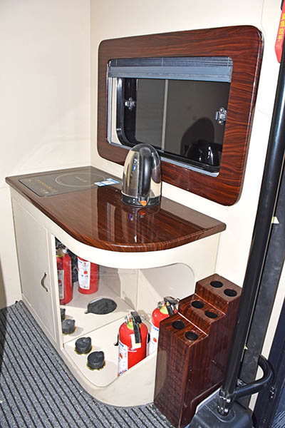 | 整車具備完善的通訊組網(wǎng)系統(tǒng)、北斗定位系統(tǒng)、視頻會(huì)議系統(tǒng)、音視頻取證系統(tǒng)、移動(dòng)辦公系統(tǒng),可實(shí)現(xiàn)野外開展視頻會(huì)議、決策指揮,能夠快速對(duì)突發(fā)事件進(jìn)行全方位一體化組織、策劃、協(xié)調(diào)及控制。 | ||||